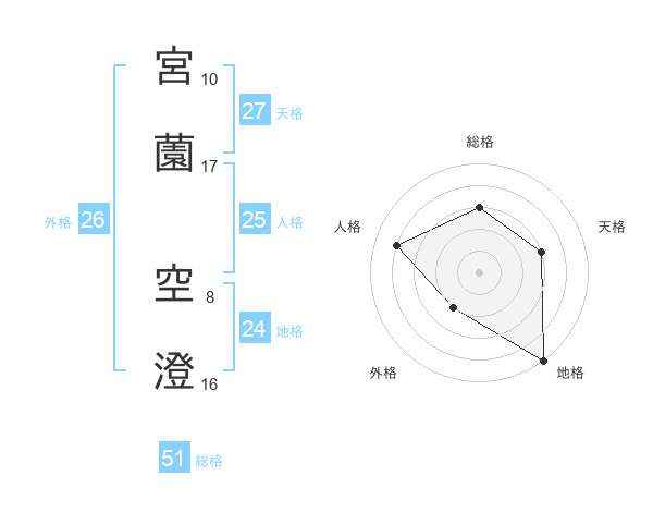宮薗 空澄さんの総格は51画の3点!