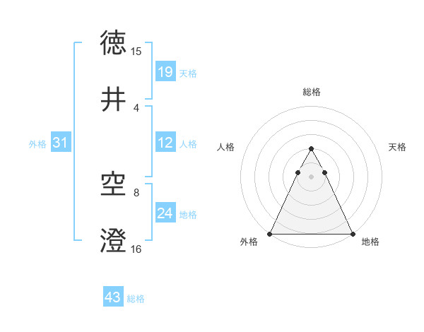 徳井 空澄さんを姓名の画数から五運を鑑定