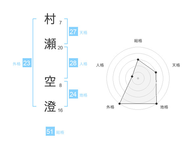 村瀬 空澄さんを姓名の画数から五運を鑑定