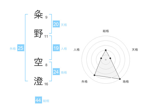 粂野 空澄さんの総格は44画の2点!