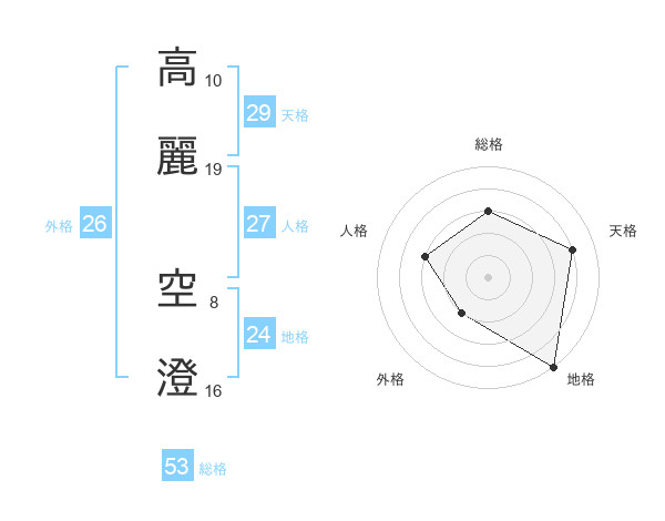 高麗 空澄さんの総格は53画の3点!