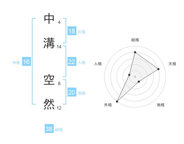 中溝 空然さんの総格は38画の4点!