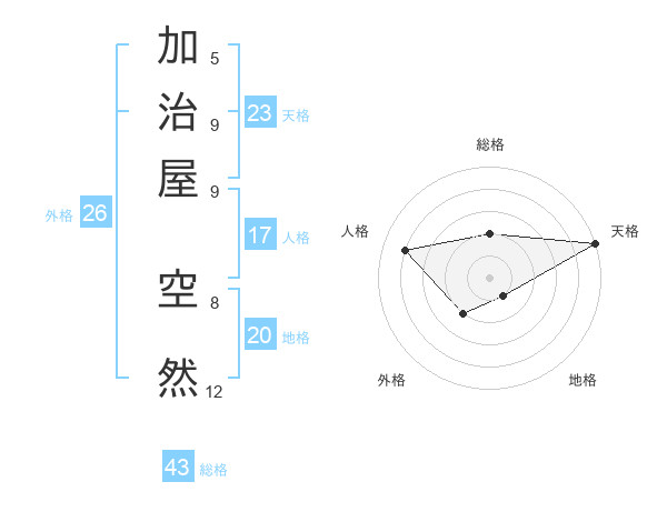 加治屋 空然さんを姓名の画数から五運を鑑定