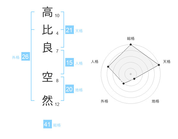 高比良 空然さんの天格は21画の5点!