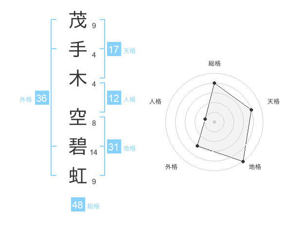 茂手木 空碧虹さんの総格は48画の4点