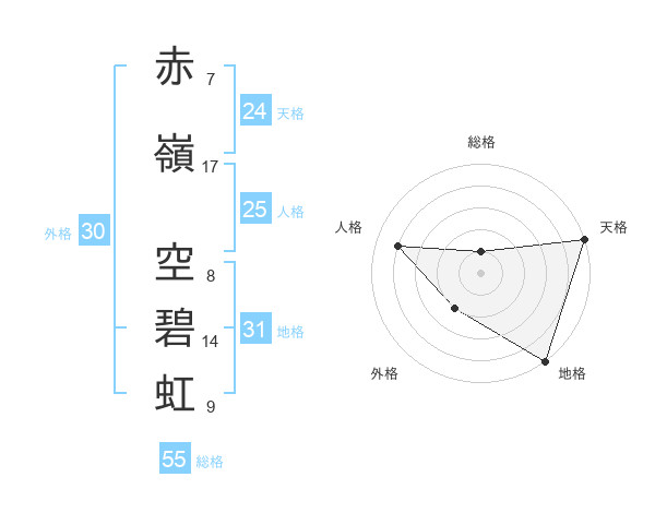 赤嶺 空碧虹さんを姓名の画数から五運を鑑定