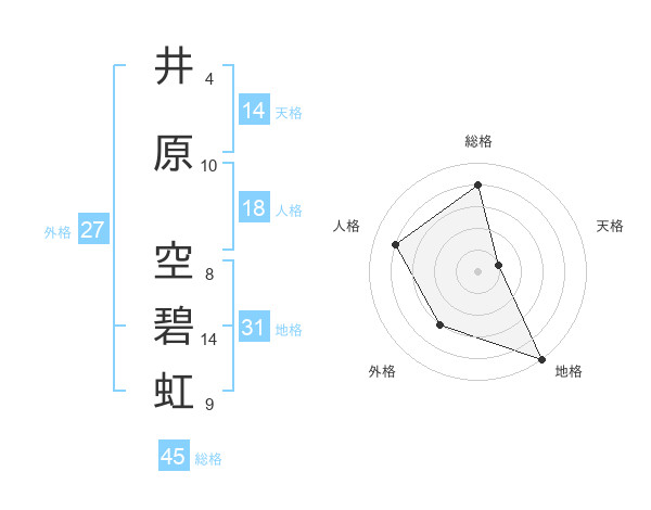 井原 空碧虹さんを姓名の画数から五運を鑑定