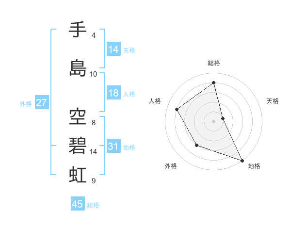 手島 空碧虹さんを姓名の画数から五運を鑑定