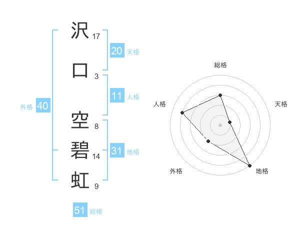 沢口 空碧虹さんの総格は51画の3点!