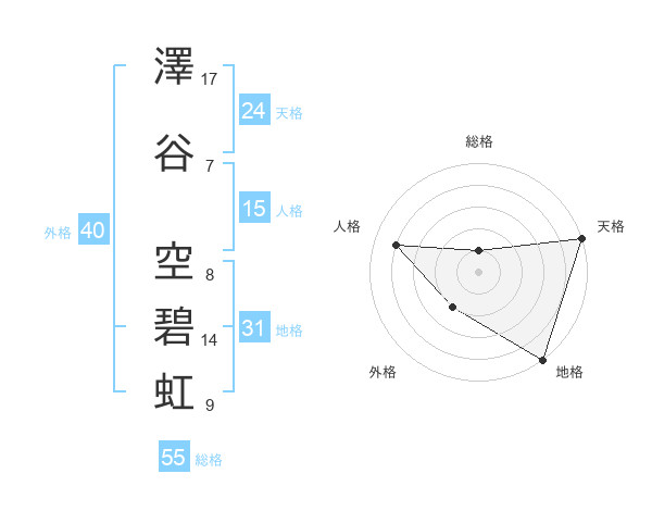 澤谷 空碧虹さんを姓名の画数から五運を鑑定