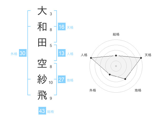 大和田 空紗飛さんを姓名の画数から五運を鑑定