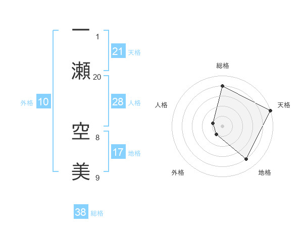 一瀬 空美さんの総格は38画の4点!