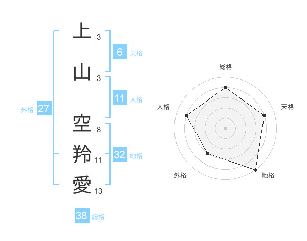 上山 空羚愛さんを姓名の画数から五運を鑑定