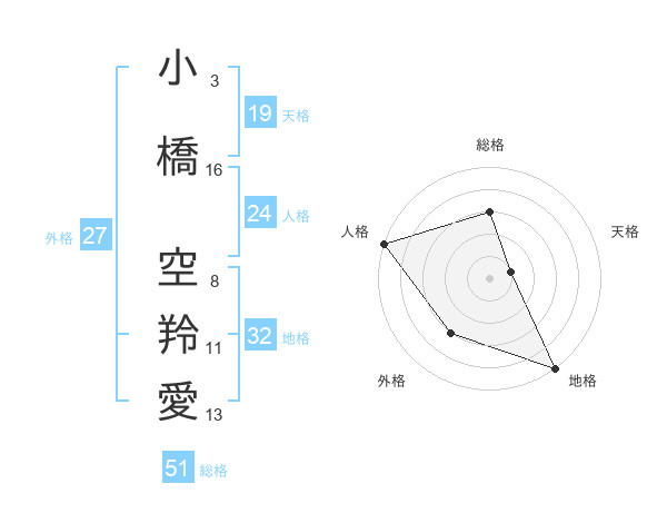 小橋 空羚愛さんを姓名の画数から五運を鑑定
