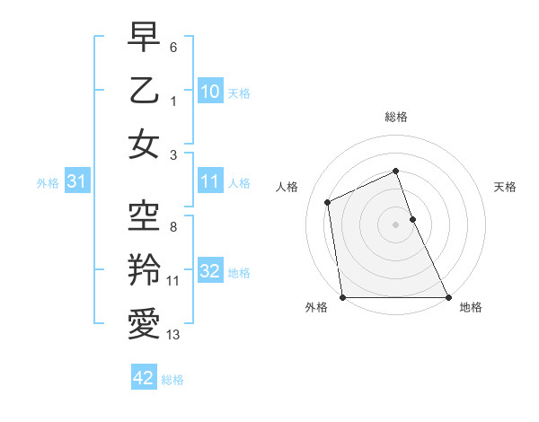 早乙女 空羚愛さんの外格は31画の5点!