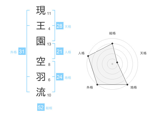 現王園 空羽流さんを姓名の画数から五運を鑑定