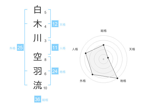 白木川 空羽流さんを姓名の画数から五運を鑑定