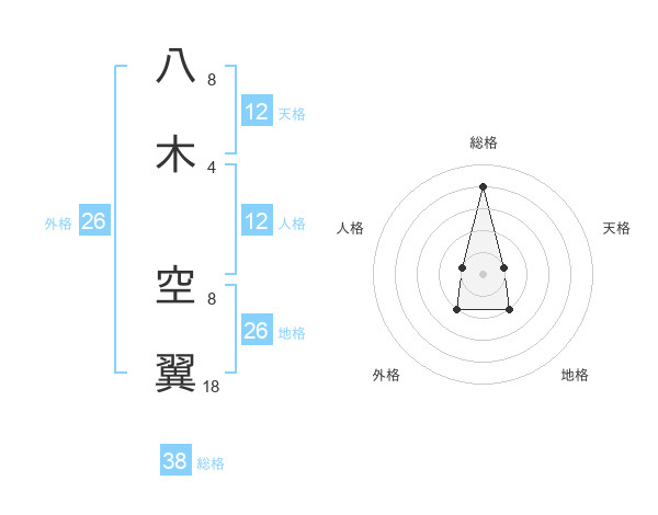 八木 空翼さんの総格は38画の4点!