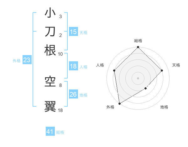 小刀根 空翼さんを姓名の画数から五運を鑑定