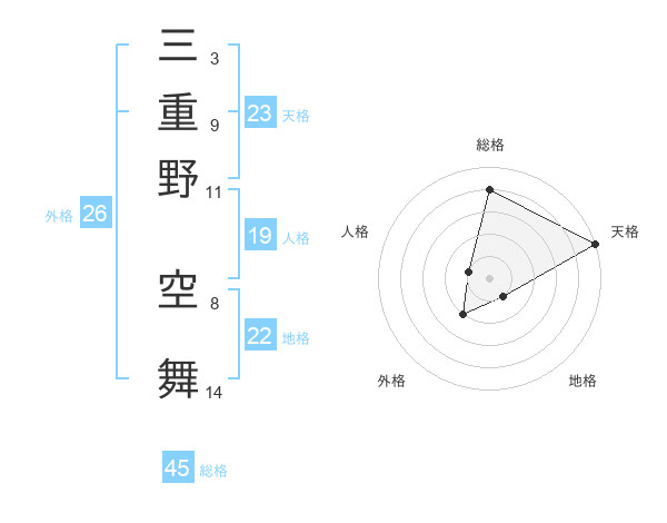三重野 空舞さんの総格は45画の4点!