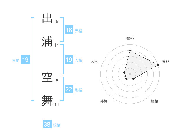 出浦 空舞さんを姓名の画数から五運を鑑定