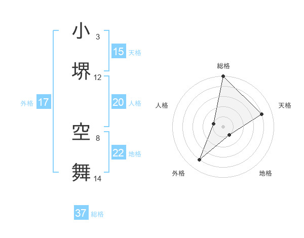 小堺 空舞さんを姓名の画数から五運を鑑定