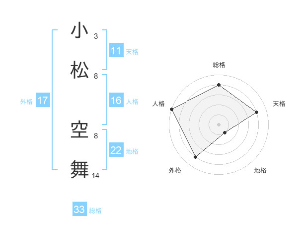小松 空舞さんの総格は33画の4点!
