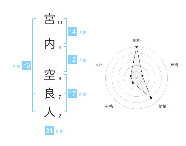 宮内 空良人さんを姓名の画数から五運を鑑定