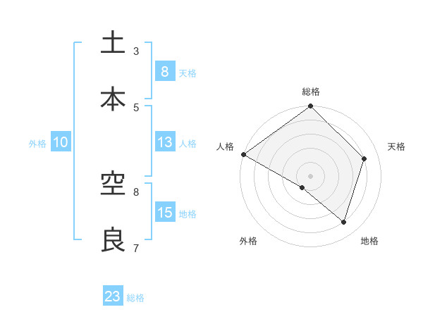土本 空良さんの人格は13画の5点!