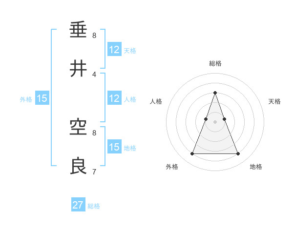 垂井 空良さんの総格は27画の3点!