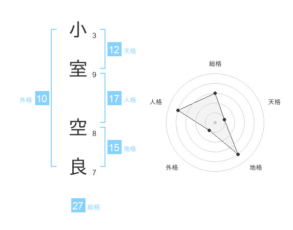 小室 空良さんの総格は27画の3点!