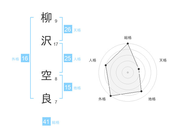 柳沢 空良さんを姓名の画数から五運を鑑定