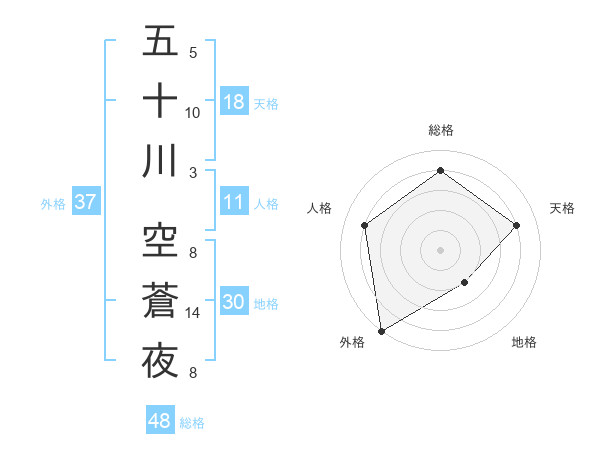 五十川 空蒼夜さんを姓名の画数から五運を鑑定