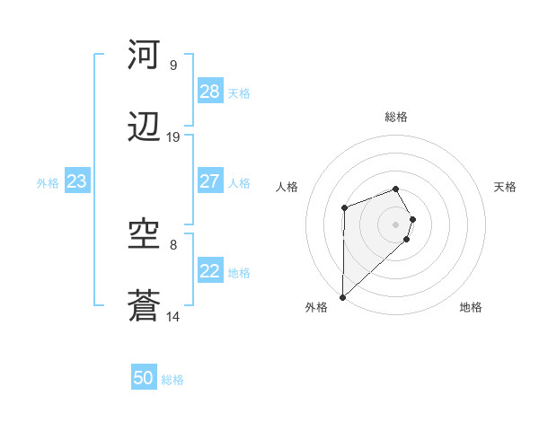 河辺 空蒼さんを姓名の画数から五運を鑑定