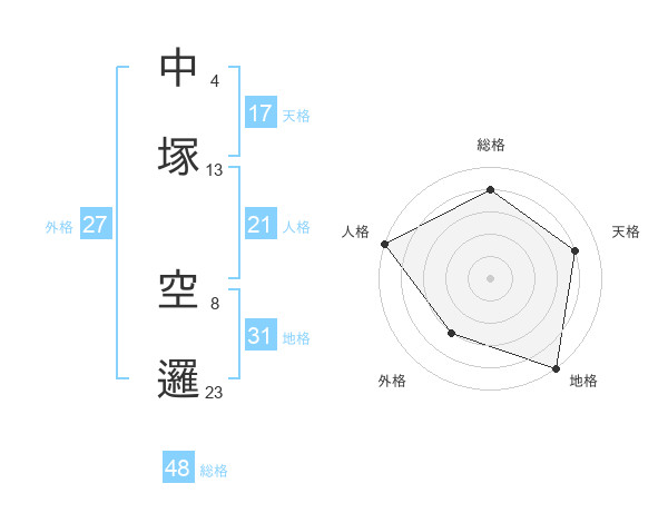 中塚 空邏さんを姓名の画数から五運を鑑定