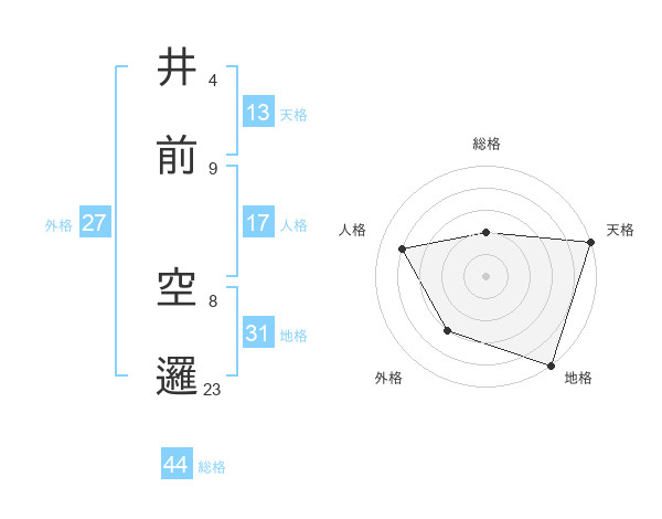 井前 空邏さんの総格は44画の2点!