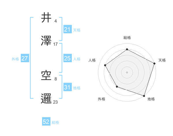 井澤 空邏さんの総格は52画の4点!