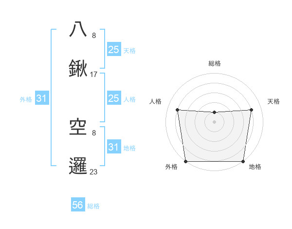 八鍬 空邏さんを姓名の画数から五運を鑑定