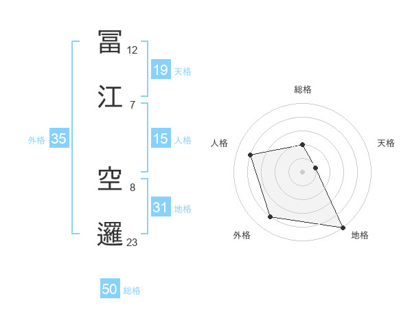 冨江 空邏さんを姓名の画数から五運を鑑定