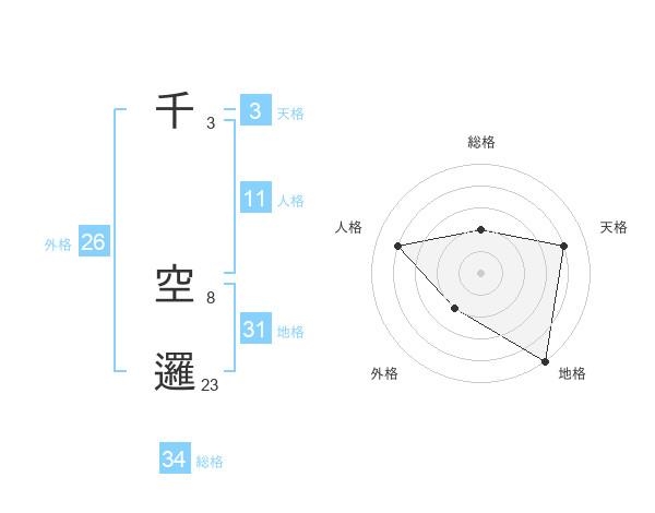 千 空邏さんの地格は31画の5点!