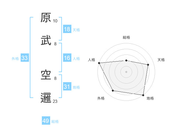 原武 空邏さんの総格は49画の2点!