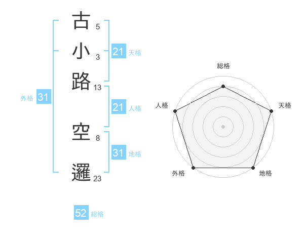 古小路 空邏さんを姓名の画数から五運を鑑定