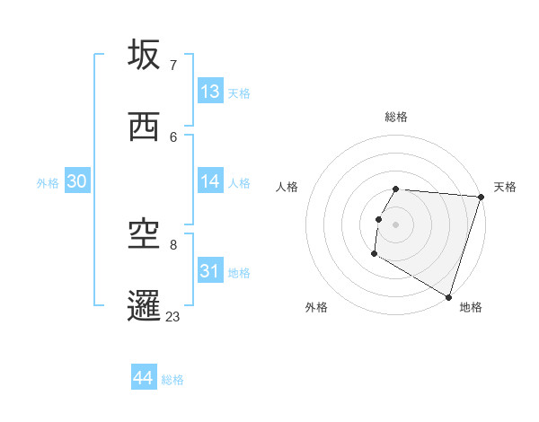 坂西 空邏さんの天格は13画の5点!