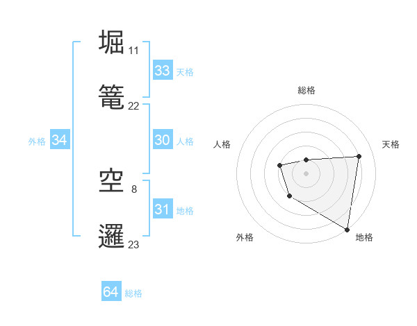 堀篭 空邏さんを姓名の画数から五運を鑑定