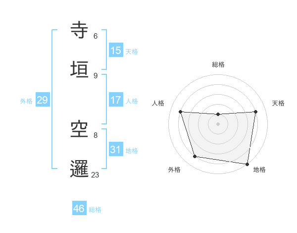 寺垣 空邏さんを姓名の画数から五運を鑑定