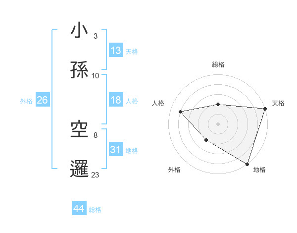 小孫 空邏さんを姓名の画数から五運を鑑定