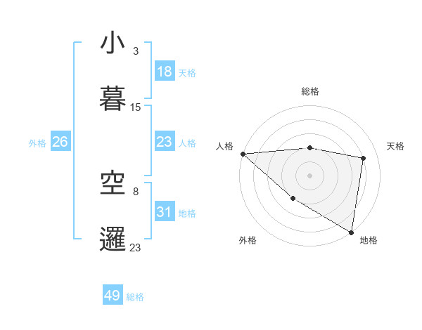 小暮 空邏さんを姓名の画数から五運を鑑定
