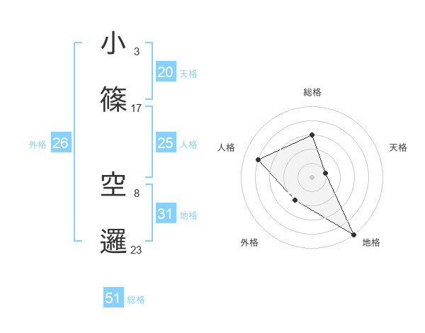 小篠 空邏さんを姓名の画数から五運を鑑定