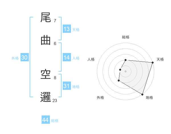 尾曲 空邏さんを姓名の画数から五運を鑑定
