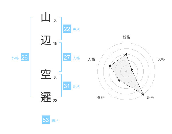山辺 空邏さんの総格は53画の3点!